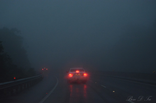 我非常幸運坐在駕駛席旁, 可以欣賞到車外煙雨霧霧美麗景色, 我也不放過任何機會把這些時刻記下.