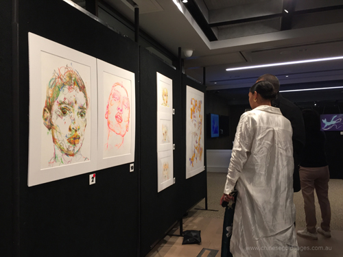 當晚的畫展作品, 雖然沒有一幅令我拍案驚奇, 但大部分作品非常之有水準, 比起我在一些小型的畫廊看過的作品大部分好得多。